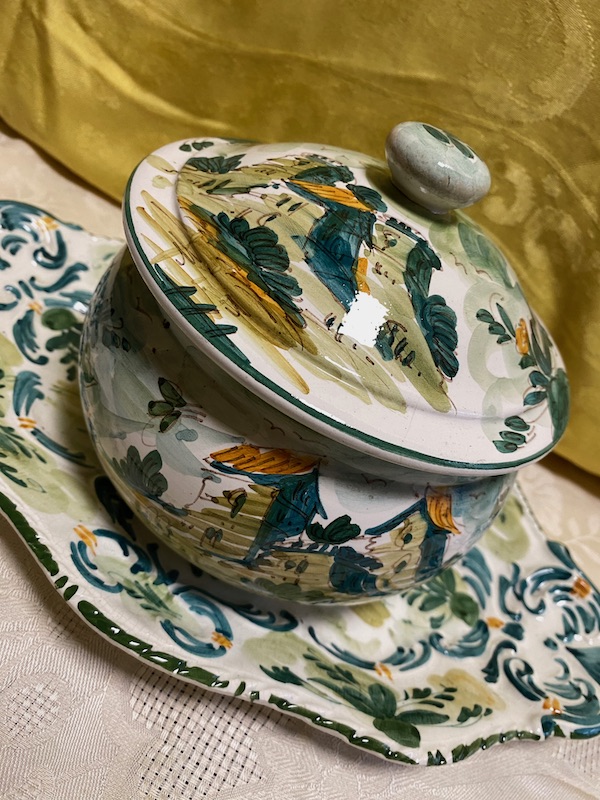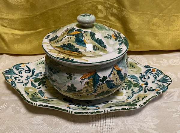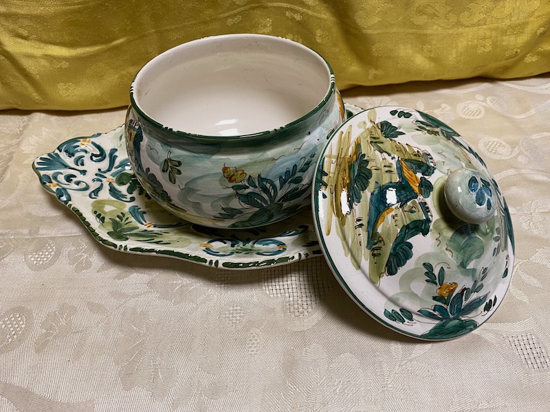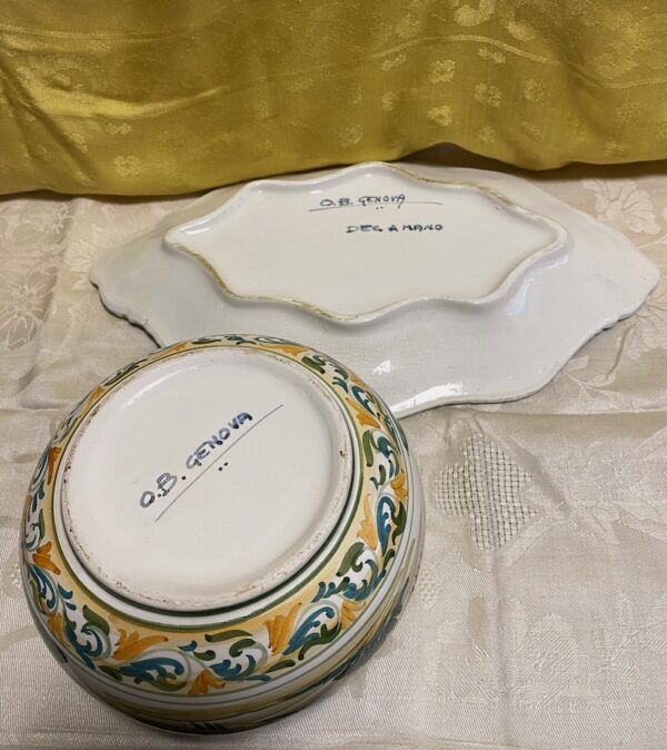 Ciotola con piatto ceramica italiana decorata a mano O.B.Genova. Ottime condizioni.