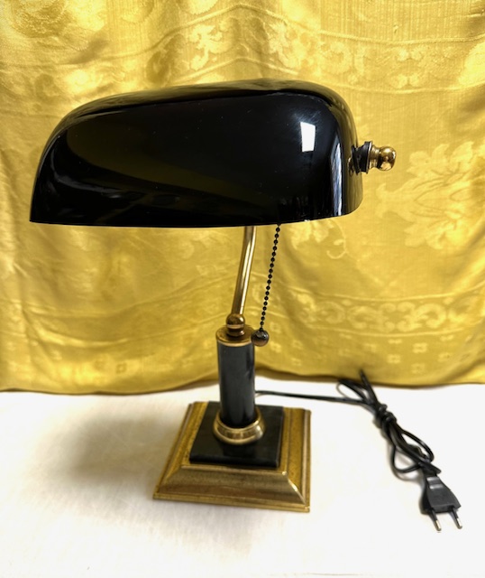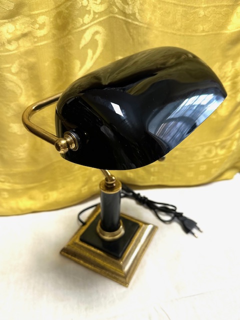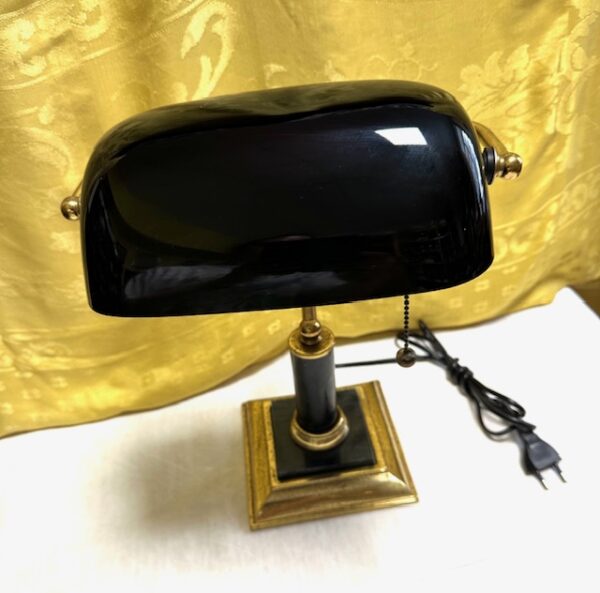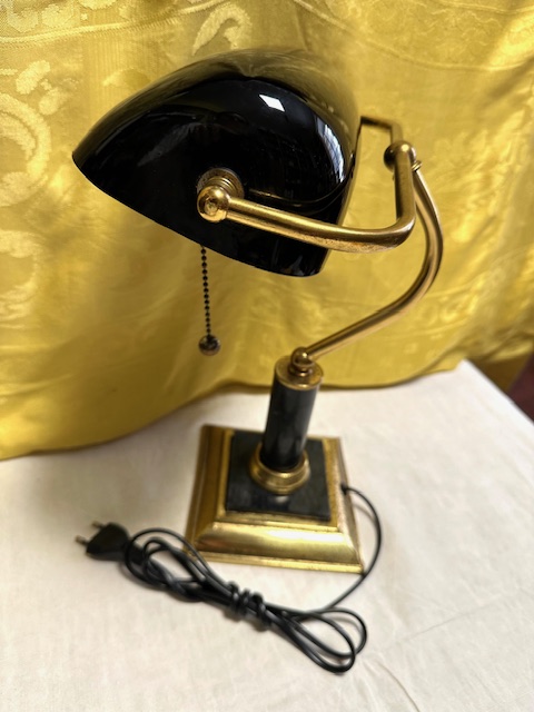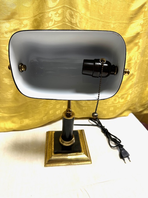 Lampada Ministeriale Vintage ottonata con paralume direzionabile nero e interruttore a cordicella. Condizione come da foto.