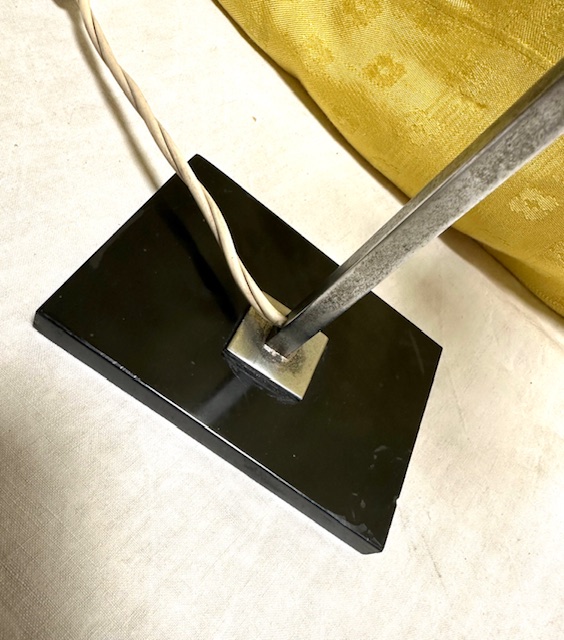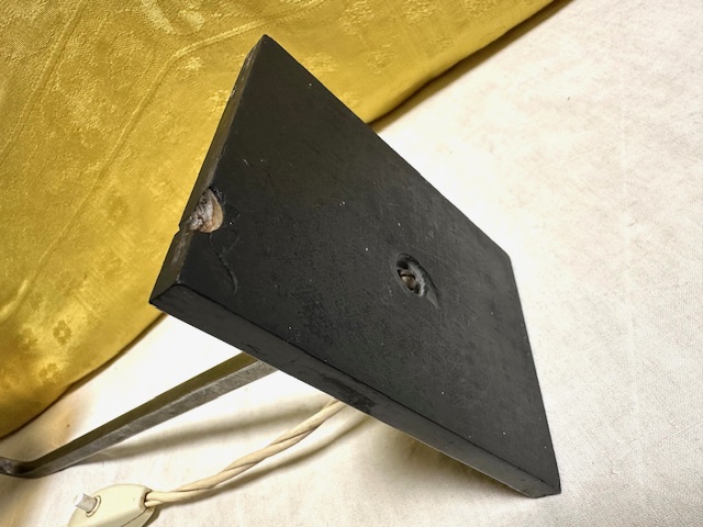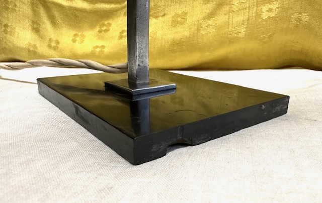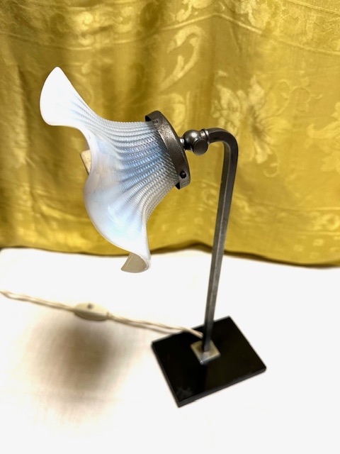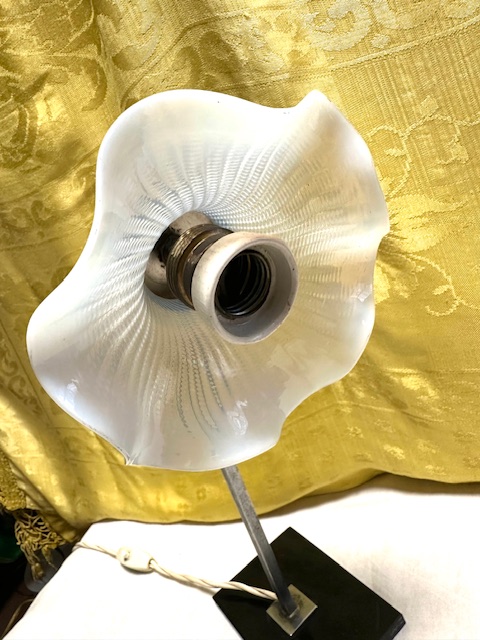 Lampada Vintage da tavolo vetro bianco, base nera e stelo metallico come da foto. Condizione come da foto.