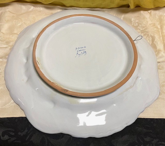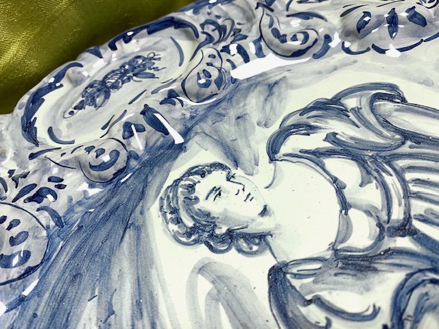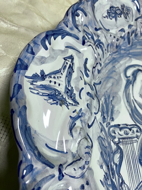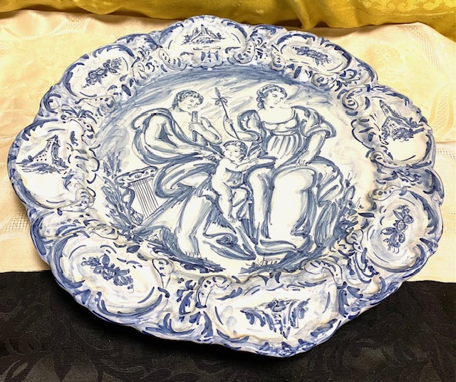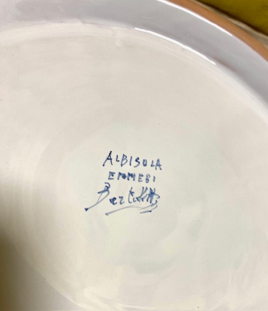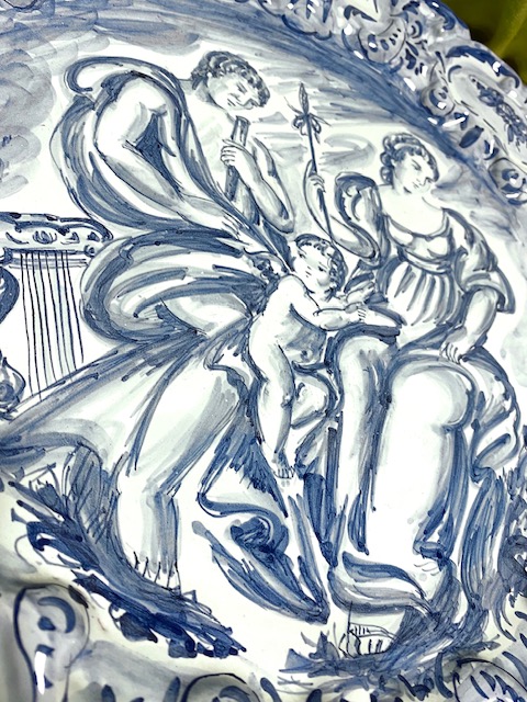 Piatto in Ceramica della Manifattura Albisola Emmebi firmato Bartolotti dipinto nei toni blu e raffigurante una scena mitologica. Ottime condizioni.