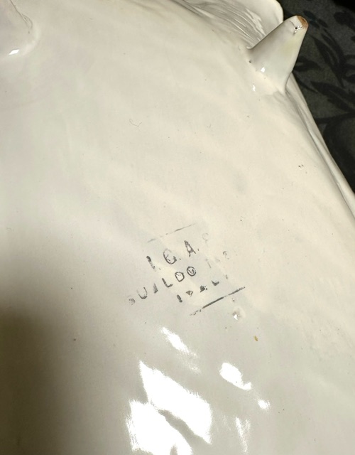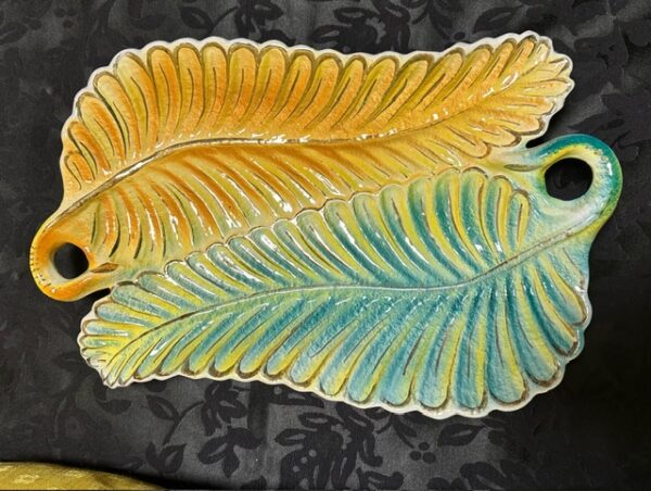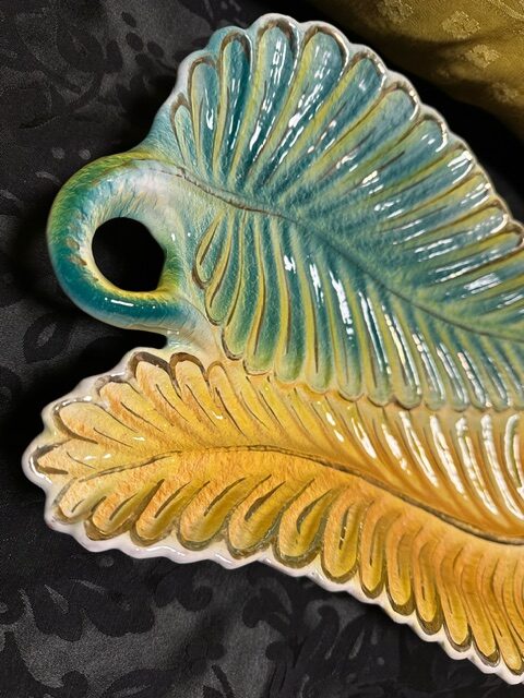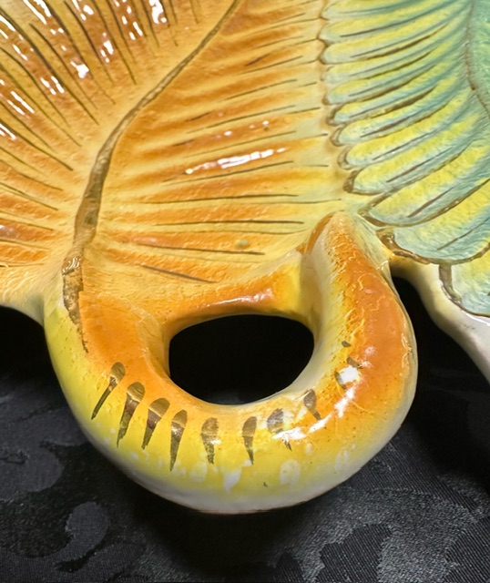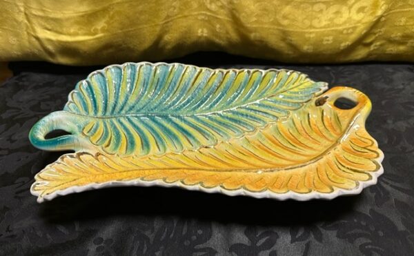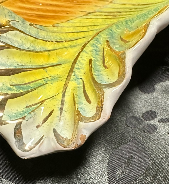 Portafrutta/Centrotavola Gualdo Tadino ceramica della manifattura I.C.A.P. Industria ceramica Angelo Pascucci (Umbria). Particolare lavorazione e decorazione. Oggetto con segni d’uso come da foto.