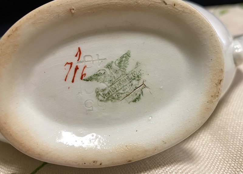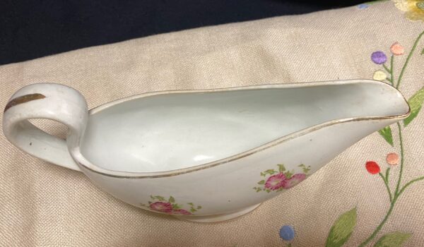 Salsiera in ceramica Verbanum Stone Laveno con marchio S.C.I. decoro fiorito con bordi in oro. Segni del tempo ma comunque in buone condizioni generali.