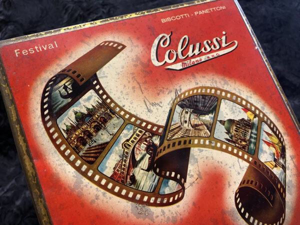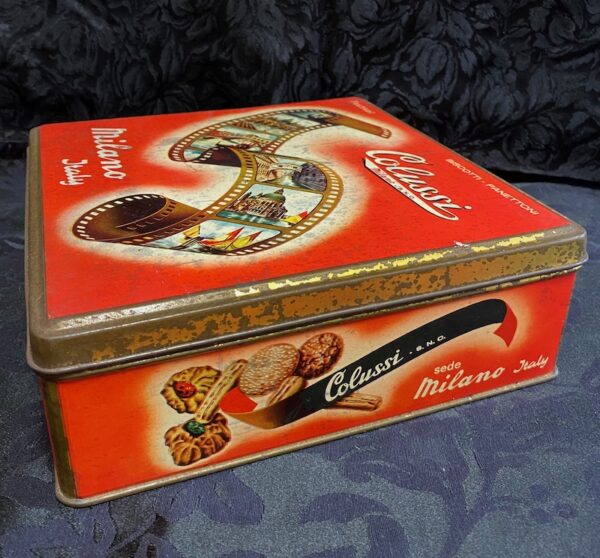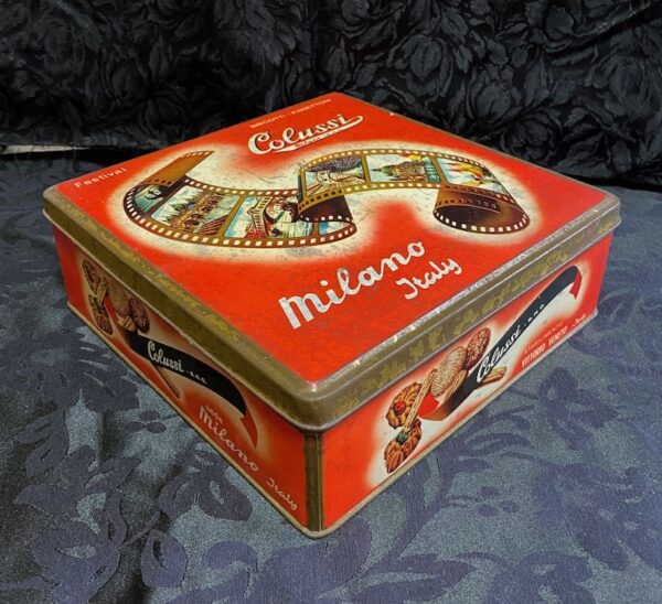 Scatola di latta biscotti – panettoni COLUSSI s.n.c- Milano. Ottimo oggetto da collezione.
