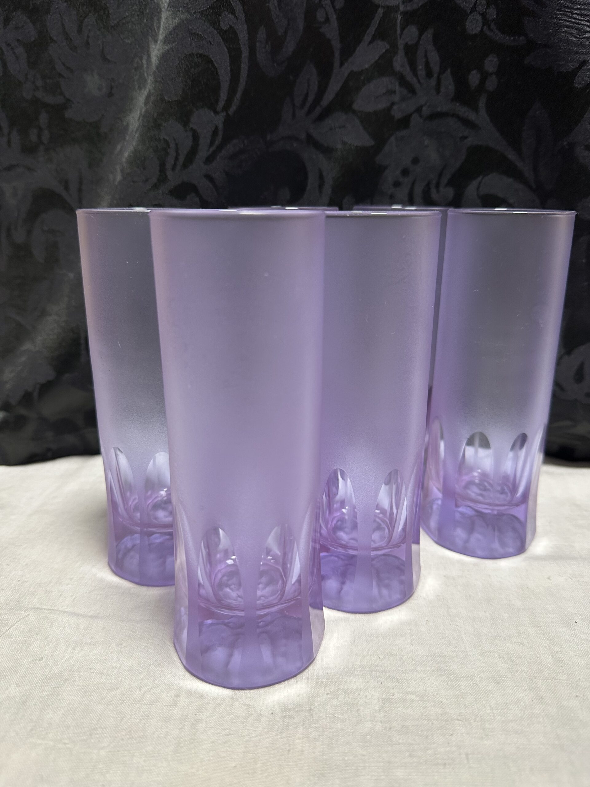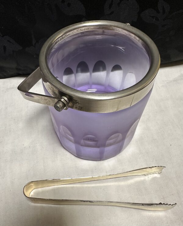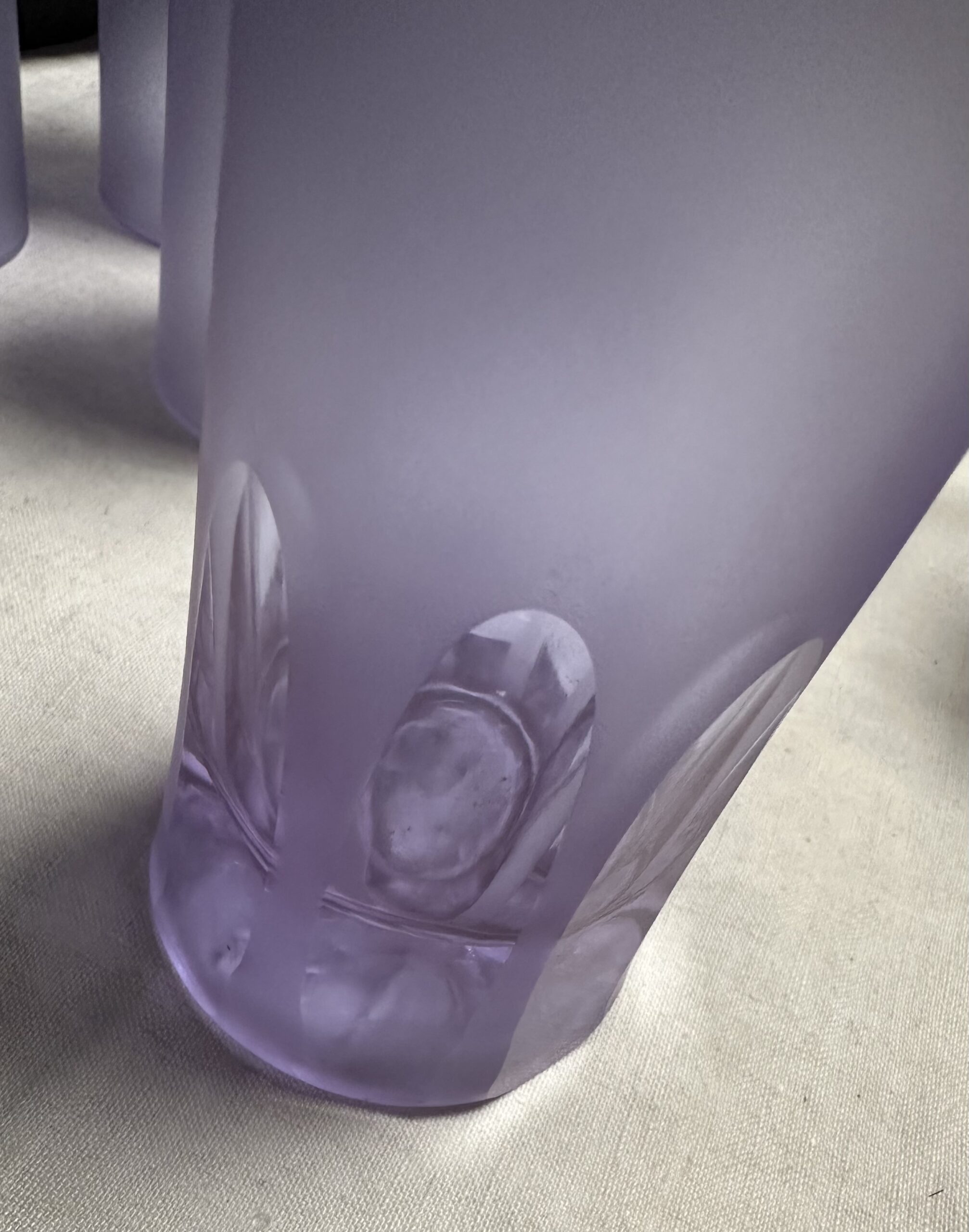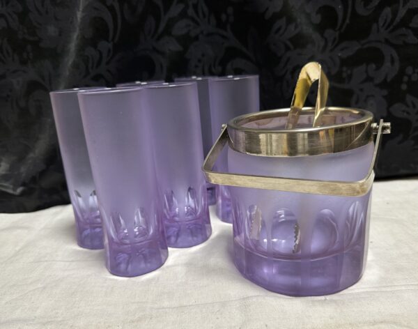 Servizio da cocktail, drink in vetro viola satinato con secchiello portaghiaccio come da foto.