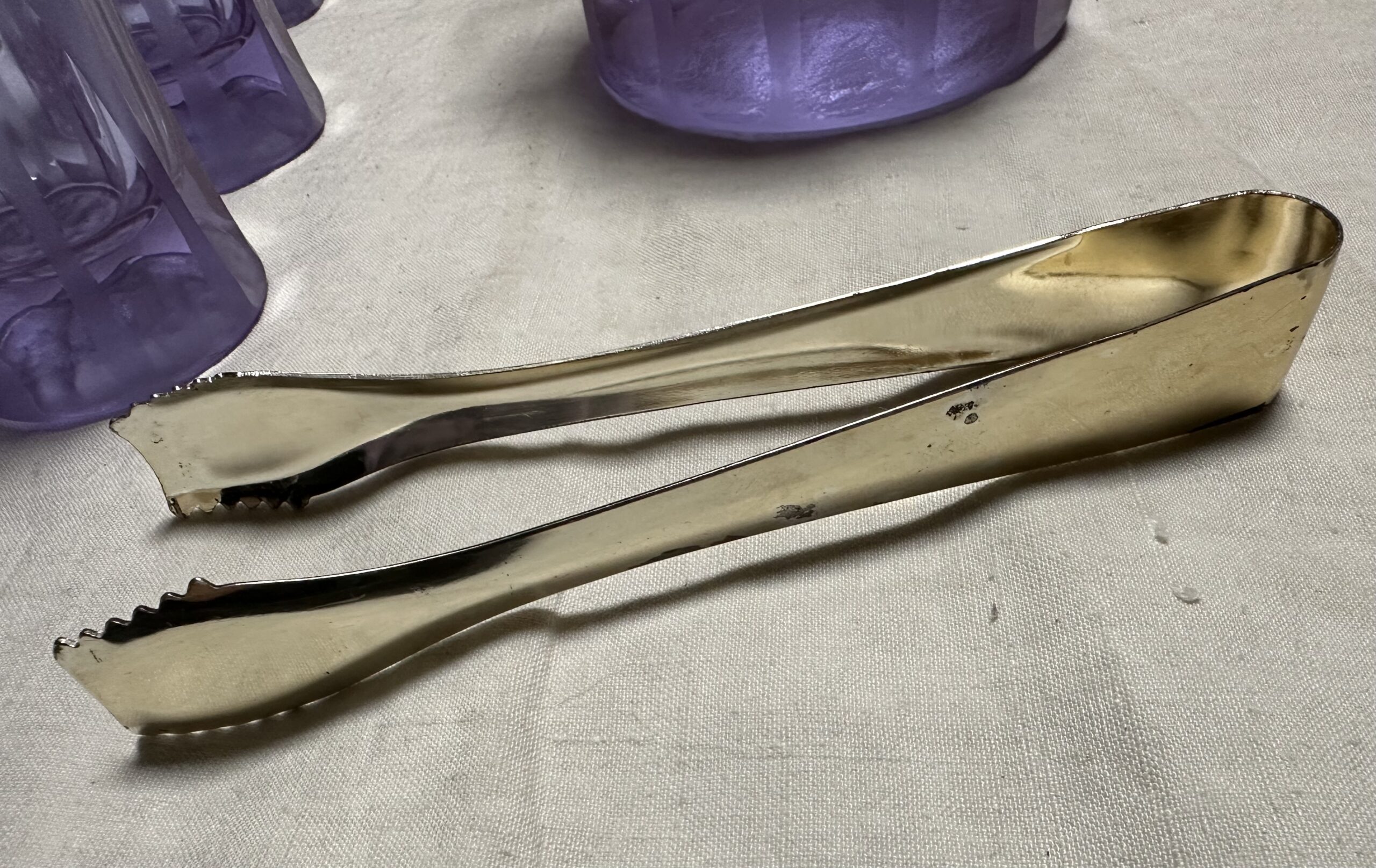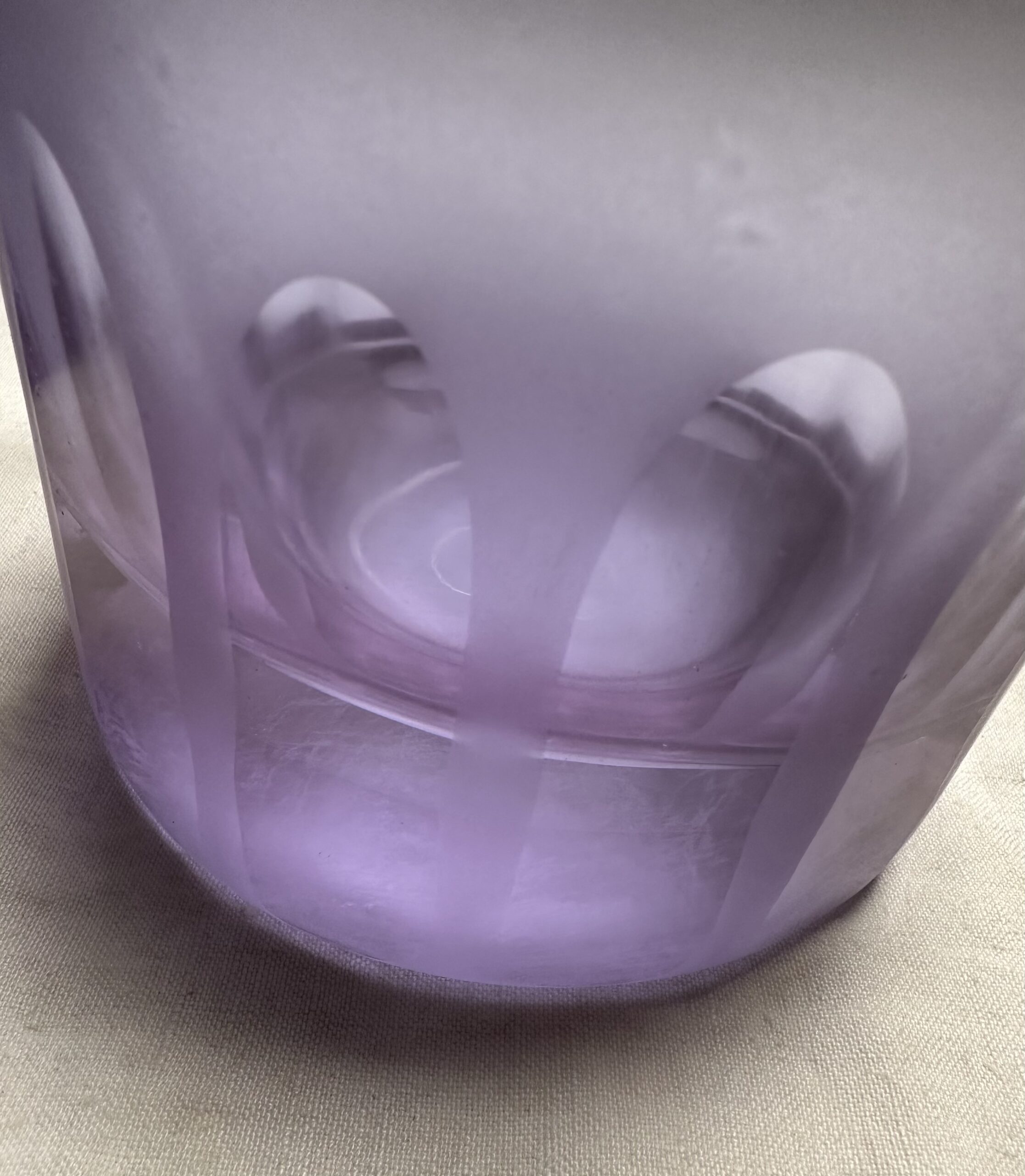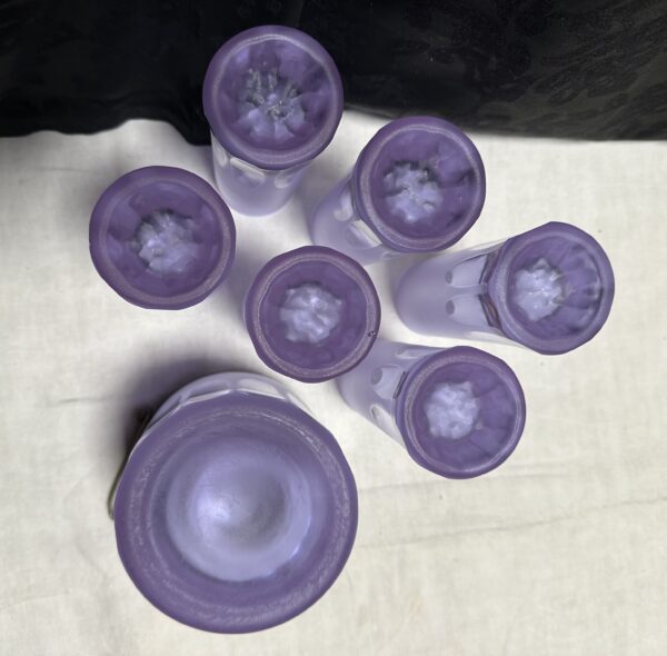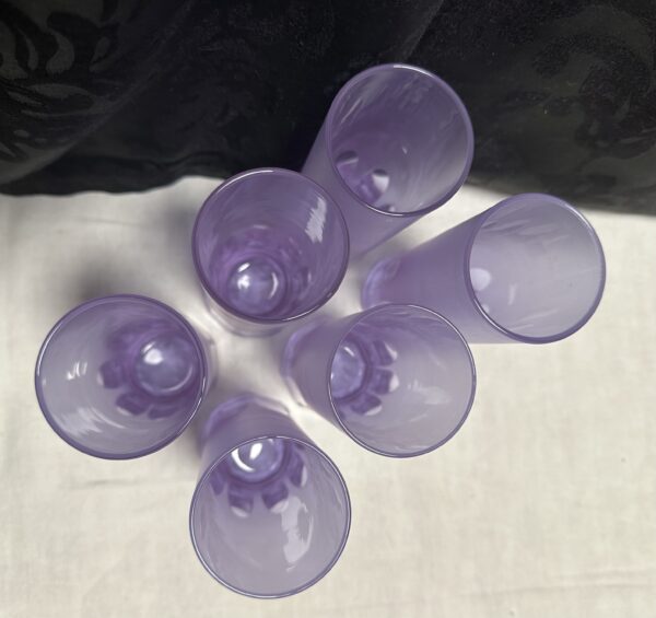 Servizio da cocktail, drink in vetro viola satinato con secchiello portaghiaccio come da foto.