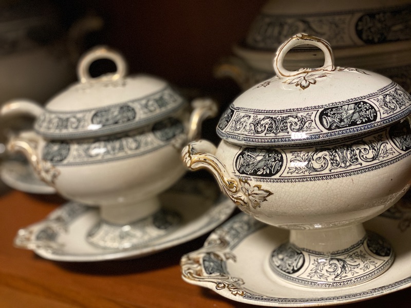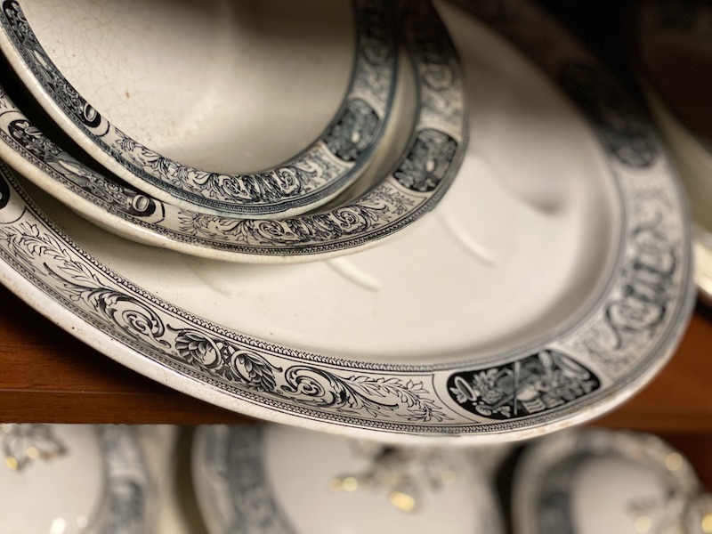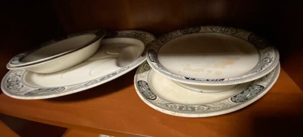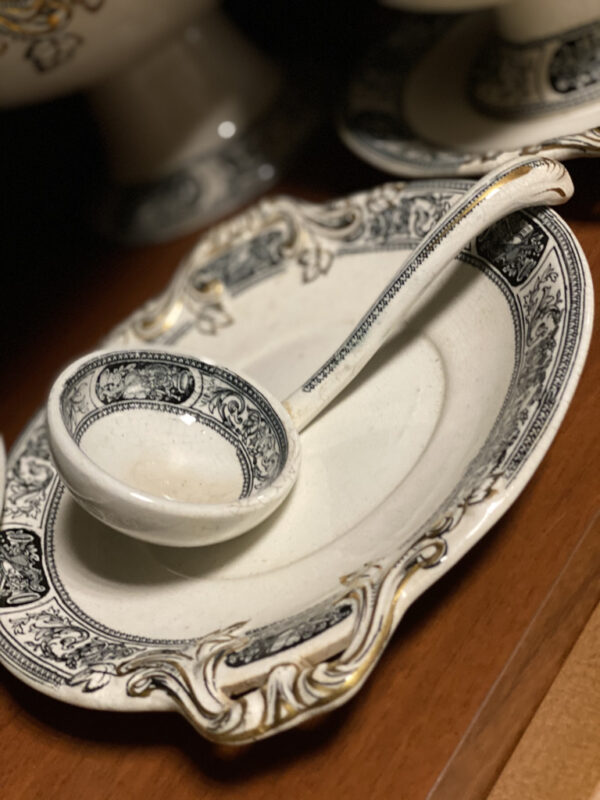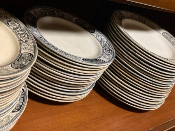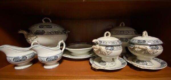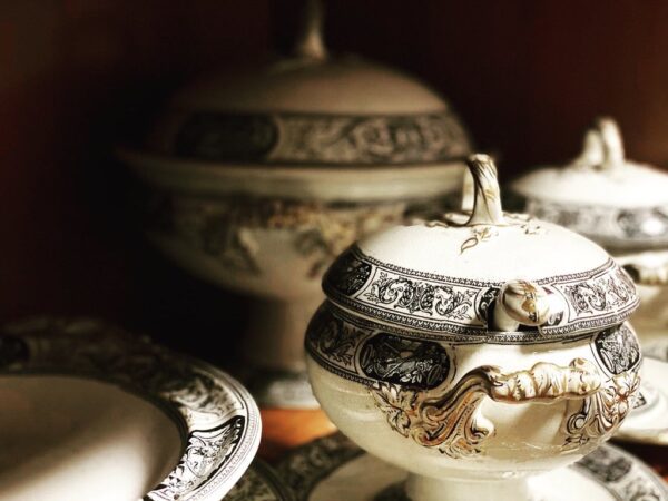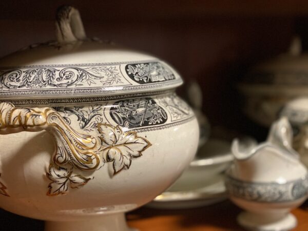 Prestigioso Servizio Inglese motivi in nero e oro composto come da foto. Segni del tempo inevitabili che impreziosiscono l’oggetto da collezione.
