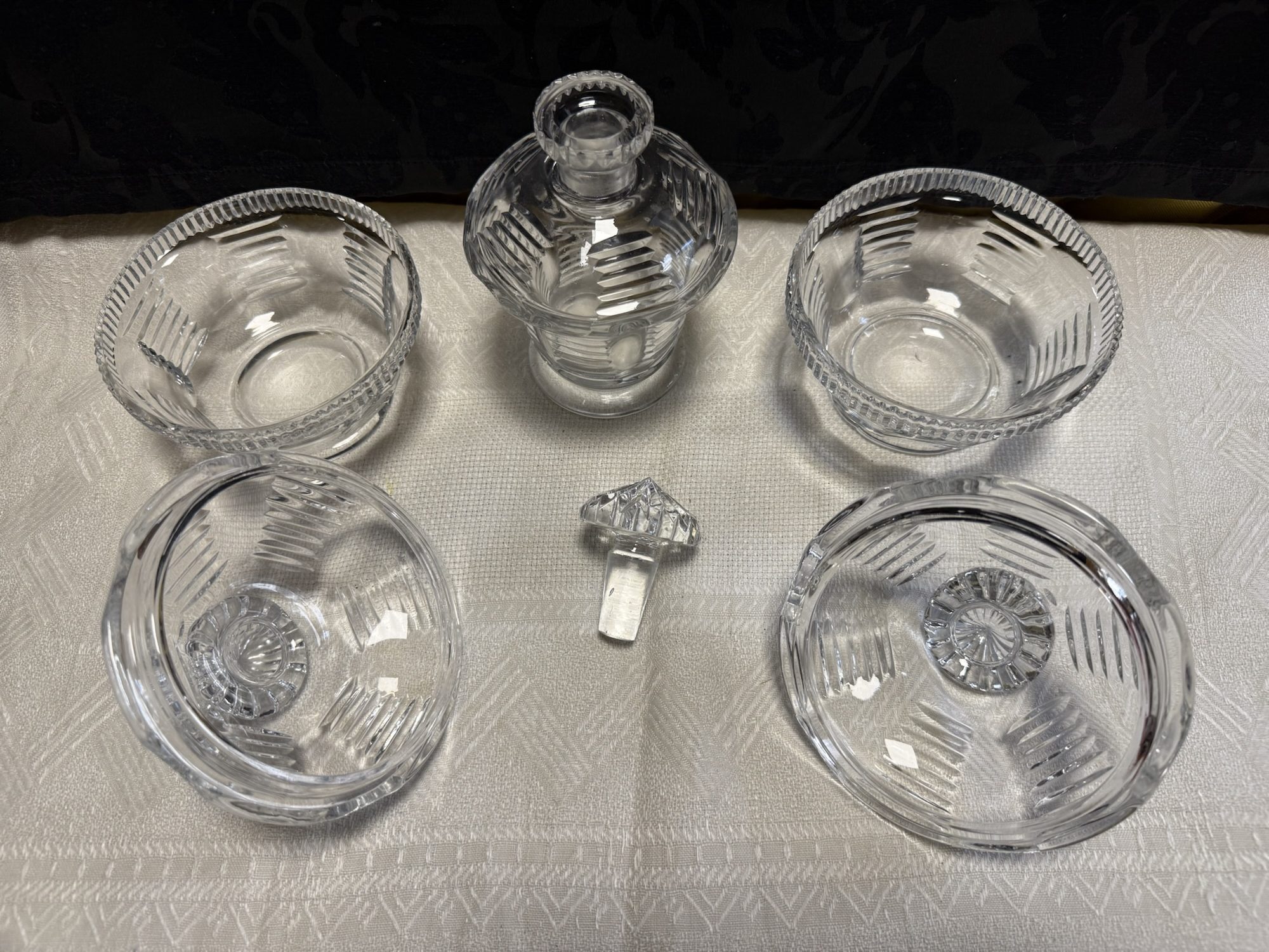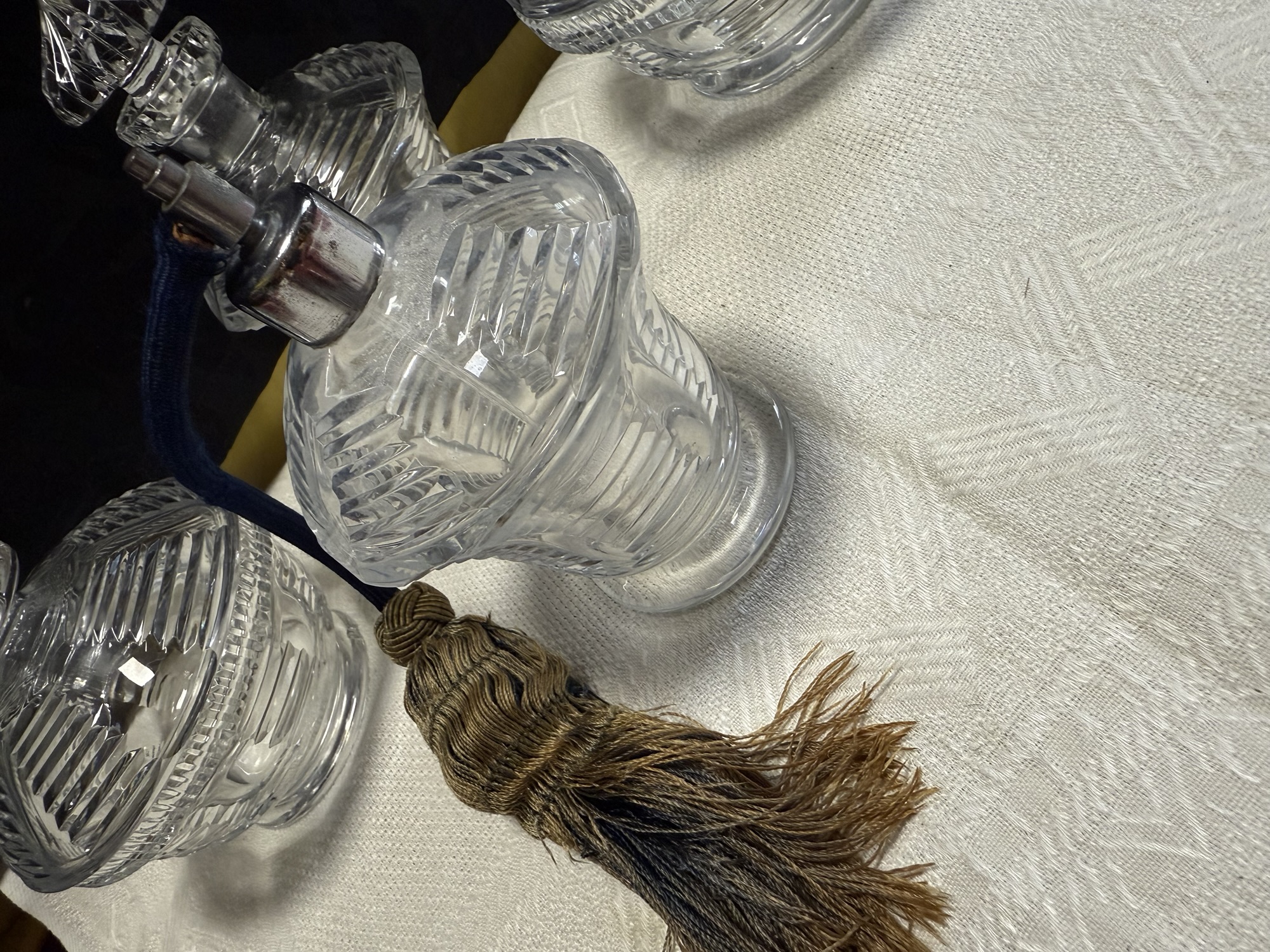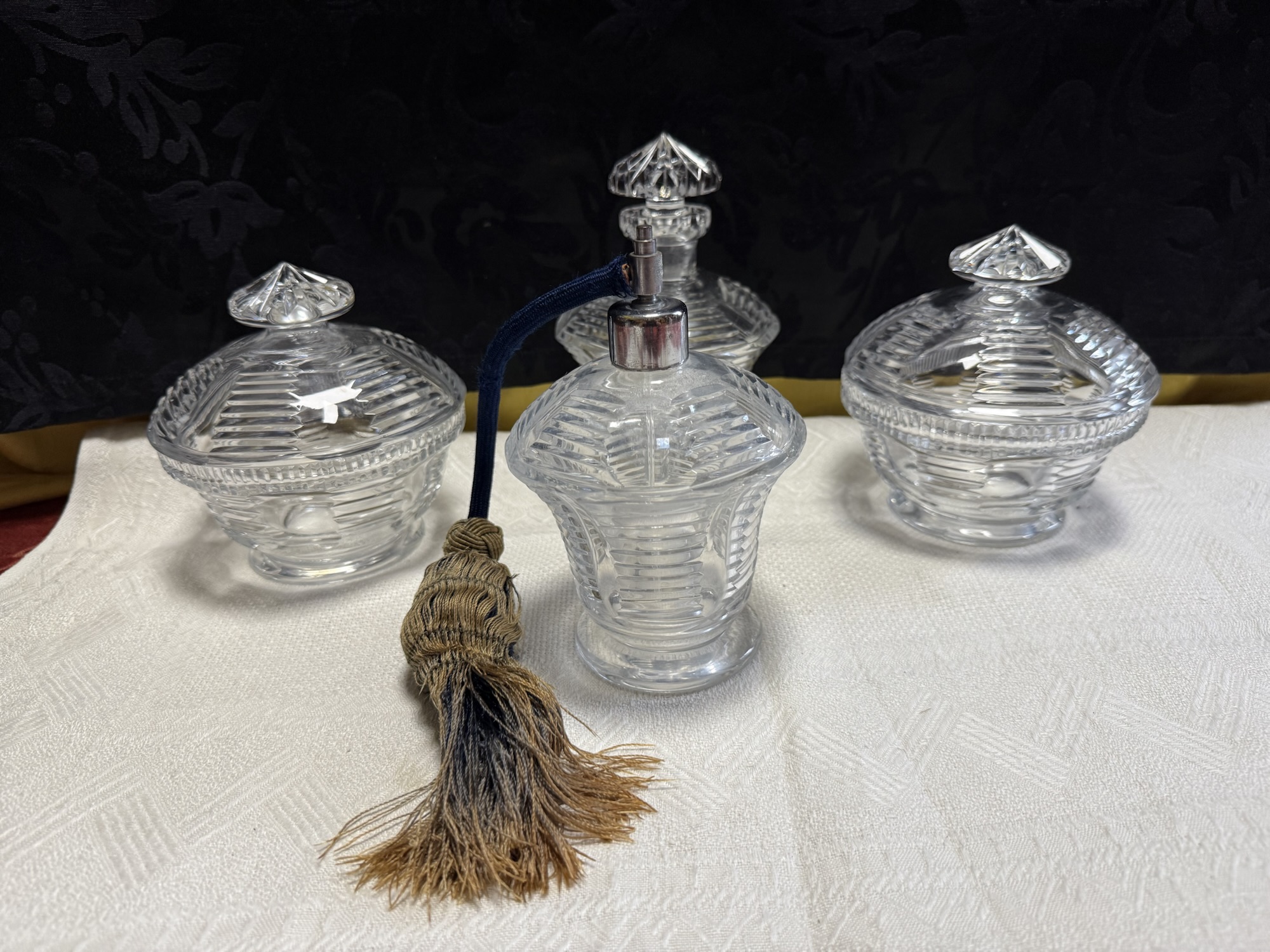 Set da Toilette in vetro d’epoca composto come da foto. 4 pezzi.