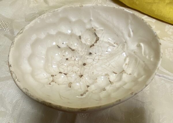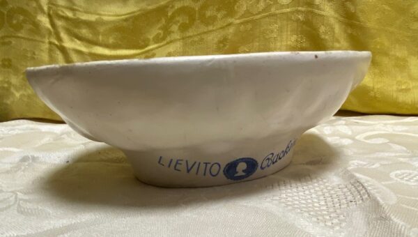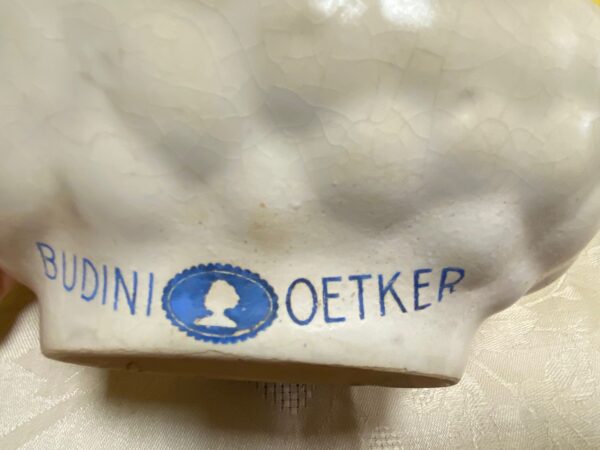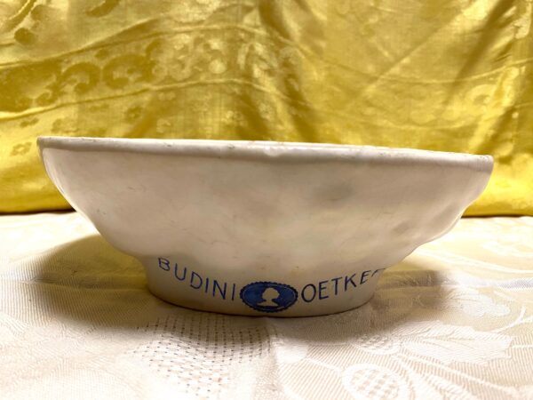Stampo per budino in ceramica d’epoca. Sull’oggetto è presente la pubblicità dei budini e di un lievito probabilmente di origini tedesche. Segni del tempo visibili ma comunque un buon oggetto da collezione.
