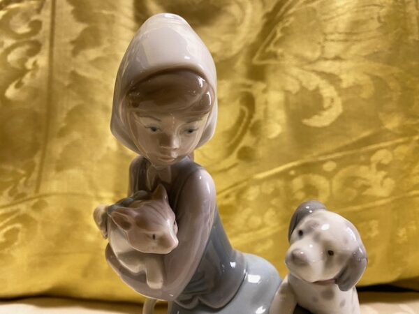 Statuina LLadrò raffigurante Ragazza con cane e gatto. Ottimo stato.