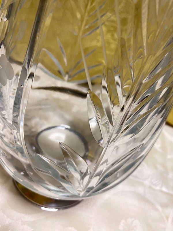 Vaso cristallo e argento 800. Cristallo molato trasparente decorazioni floreali. Ottime condizioni.